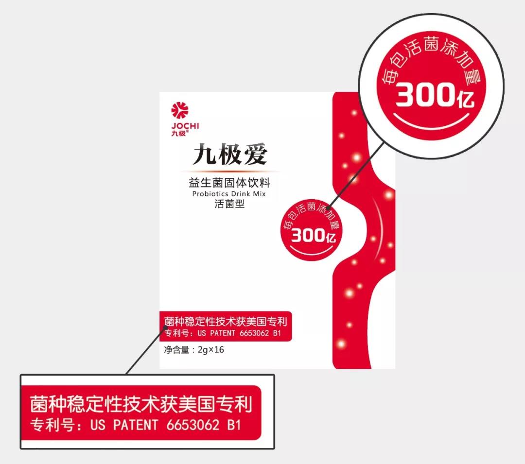 九極愛益生菌的菌種穩(wěn)定性技術獲美國專利(專利號:US PATENT 6653062 B1),每包